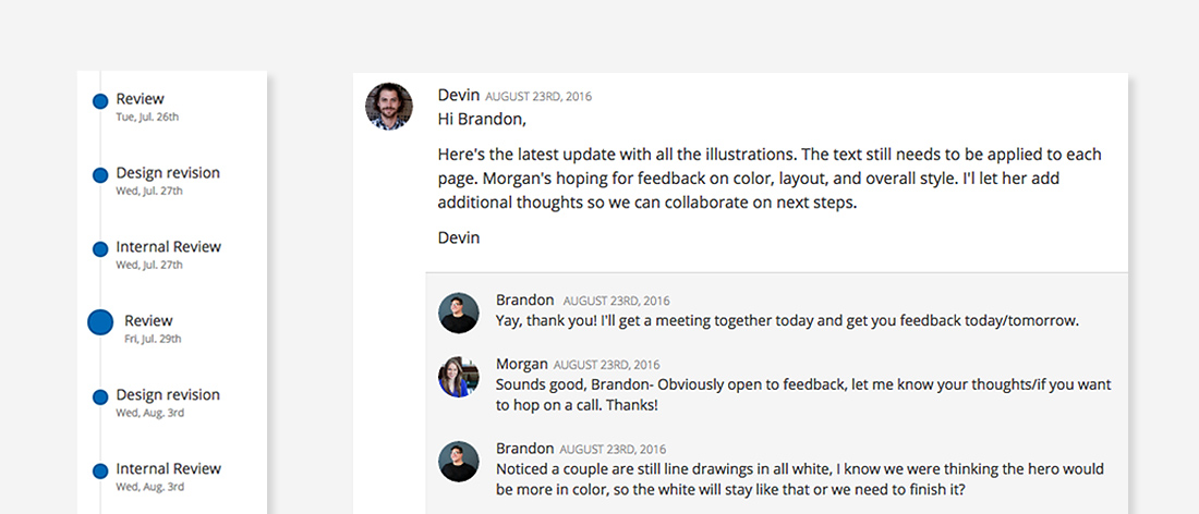 Working through Lightboard's collaboration software, Brandon, Devin, and Morgan locked in the style and content of the eBook.